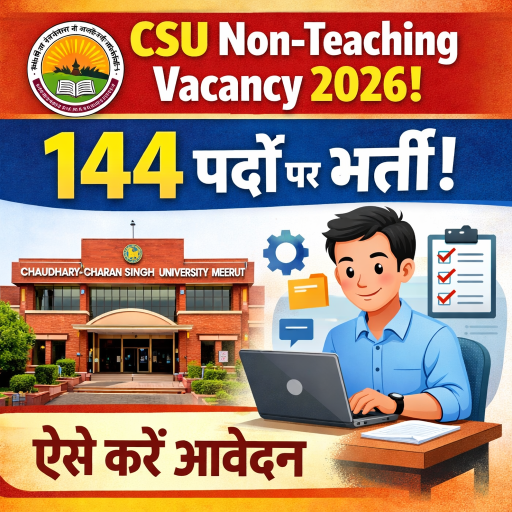 चौधरी चरण सिंह विश्वविद्यालय (CCSU/CSU), मेरठ में Non-Teaching के 144 पदों पर निकली भर्ती 2026 के लिए यह एक विस्तृत मार्गदर्शिका है। यदि आप सरकारी नौकरी की तैयारी कर रहे हैं, तो यह आपके लिए एक बेहतरीन अवसर हो सकता है।
